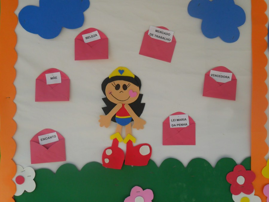Para fazer os murais ou painéis do Dia da Mulher, você pode usar diversos materiais. Se você tiver habilidade pode fazer um belo mural com um desenho bem feminino, ou então fazer utilizando EVA, papéis coloridos e figuras e palavras impressas no computador.