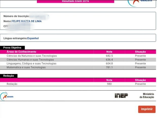 | Resultado das provas do Enem (Foto:Reprodução/site Inep) |