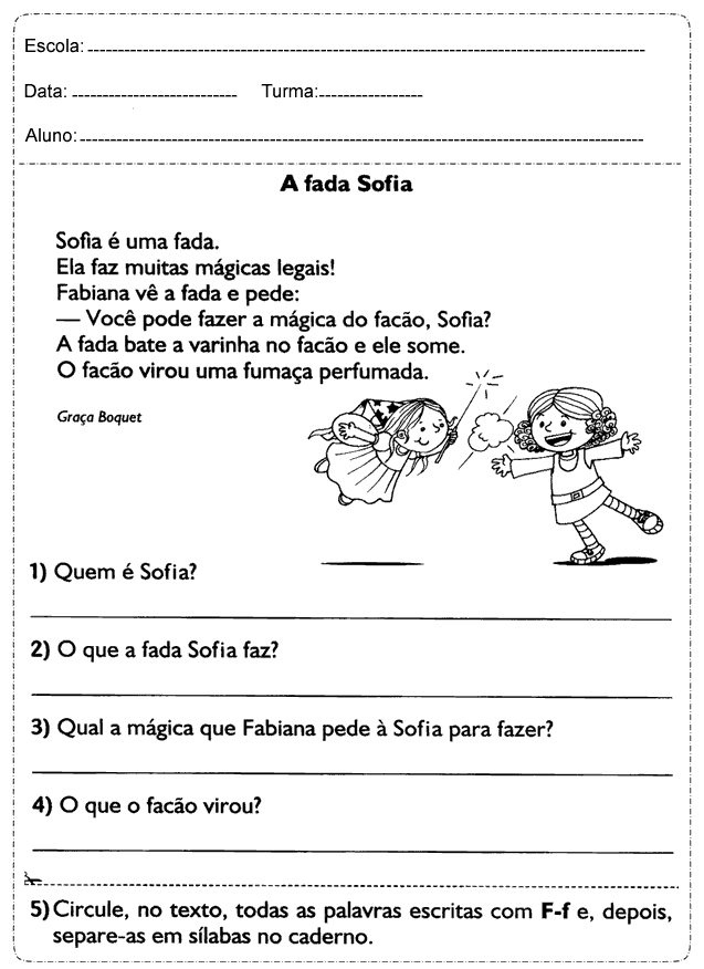 As atividades falam sobre: Leia e responda as perguntas, aprenda as sílabas, forme frases com sílabas, interpretação de texto para o 2° ano, forme palavras, exercícios de ortografia, sinais, pontuações e complete com ar, er, ir, or e ur.