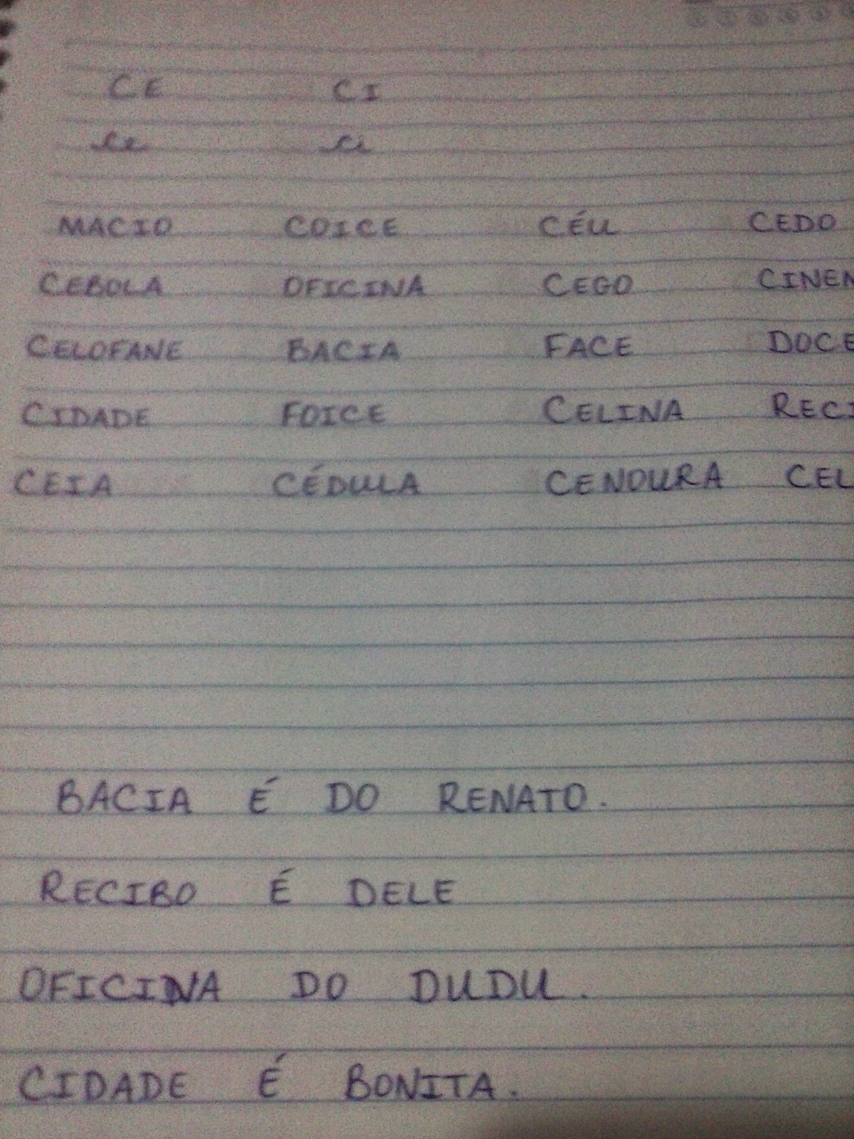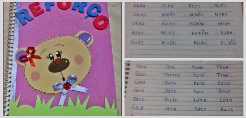 - Depois de fazer essa leitura com os alunos de preferência individualmente, acrescente nos cadernos outras famílias mais complexas, escreva outras palavras com letras minúscula e vá sempre atualizando o caderno, no ritmo de aprendizagem. Importante que seja feito com a letra do professor.