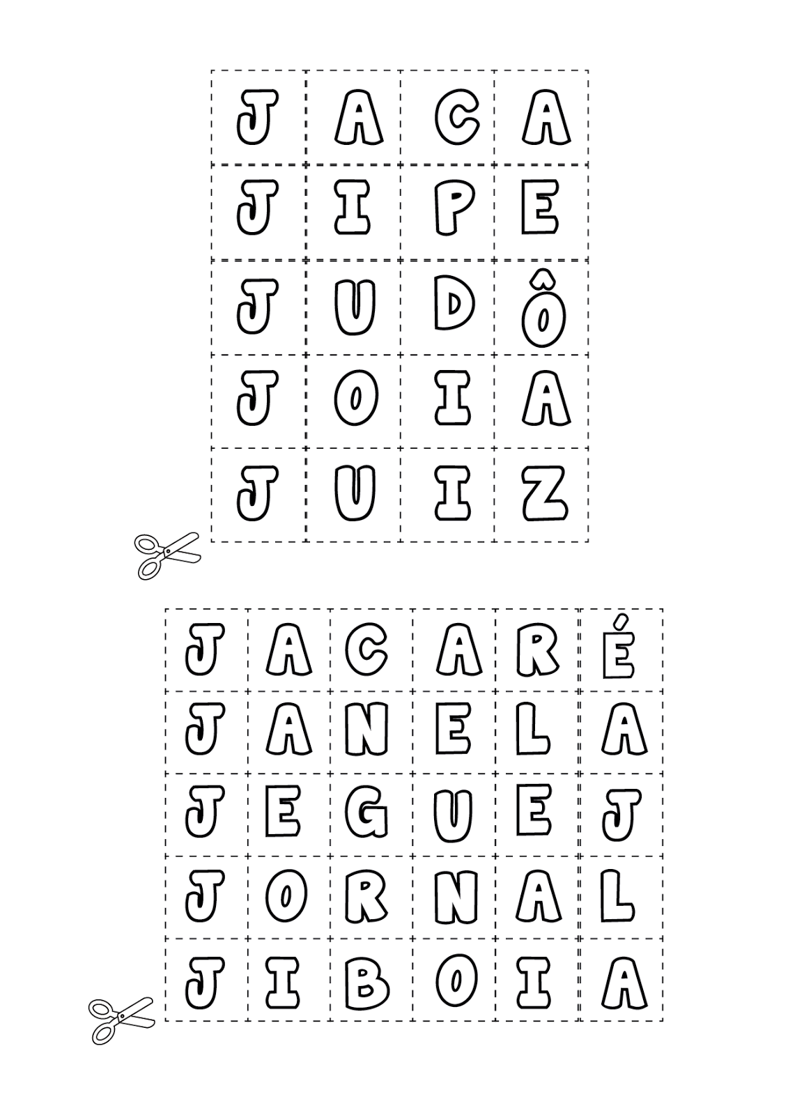 | Fichas de Palavras – Letras J |