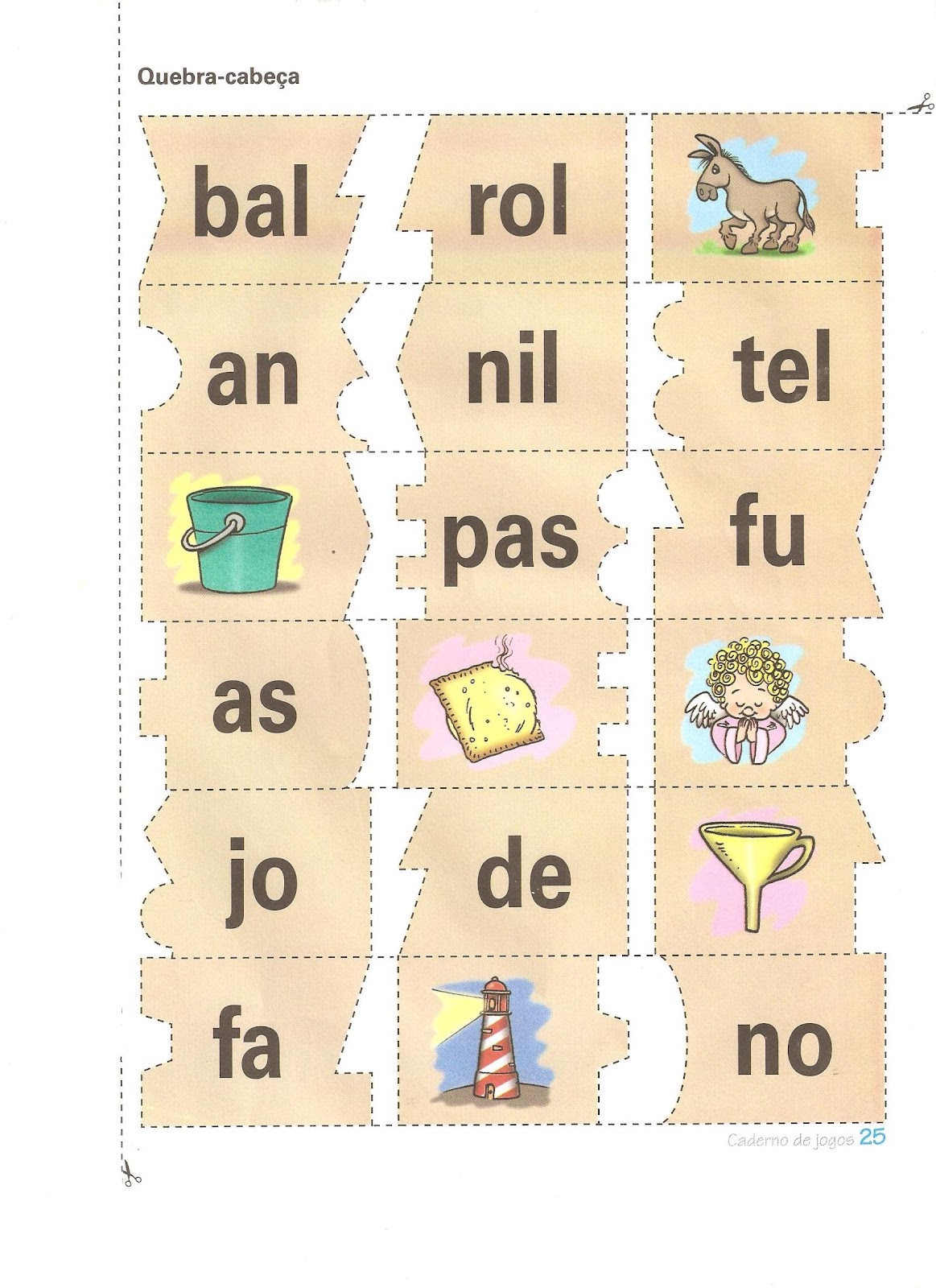 Faça ainda um Quebra-cabeça com as sílabas recortando as fichas e formando-as para descobrir os nomes.