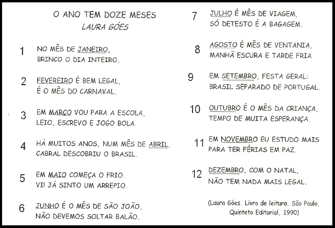 Olá amigos e amigas do SÓ ESCOLA. Nesta postagem trago para vocês um poema sobre os meses do ano.