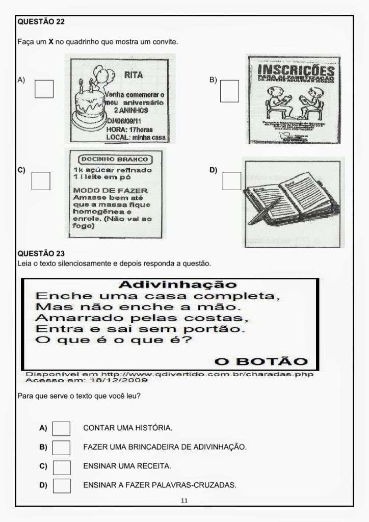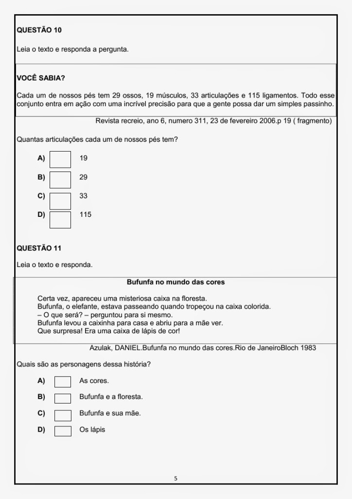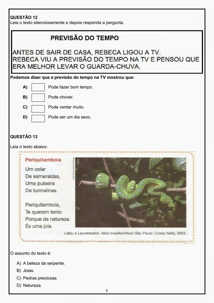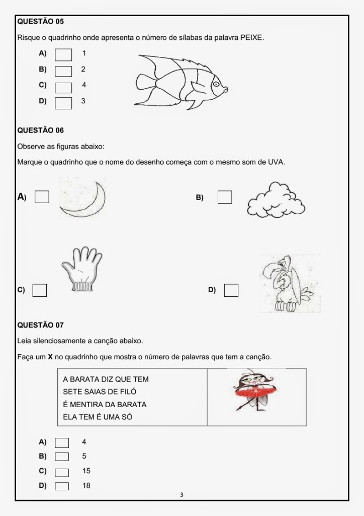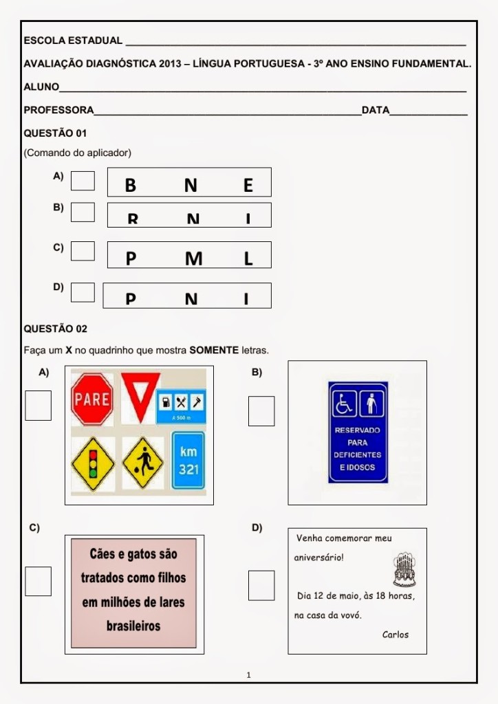Avaliação diagnóstica para o 3º ano – AVALIAÇÃO DE PORTUGUÊS