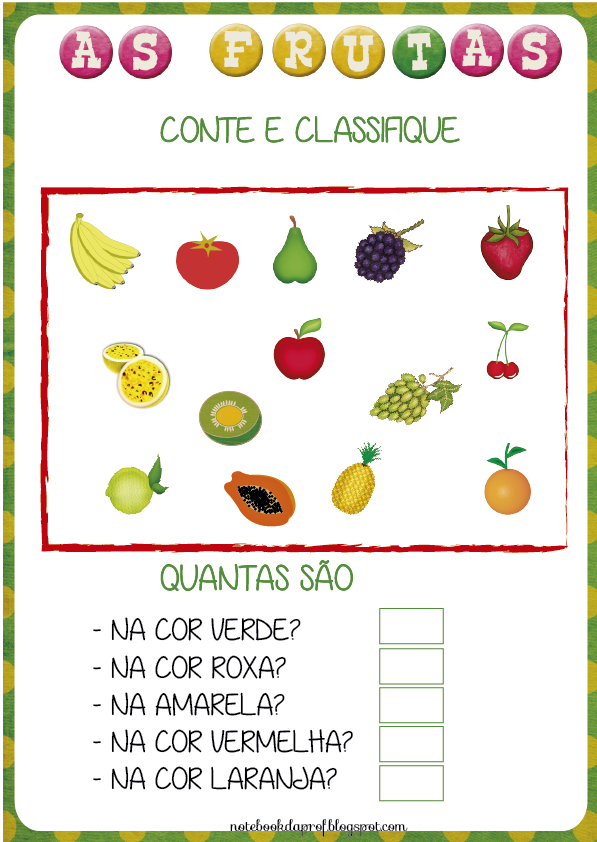 E para finalizar o Projeto Frutas, uma atividade de gráfico. De uma maneira lúdica a criança pode compreender a lógica de como funciona o gráfico de barras.