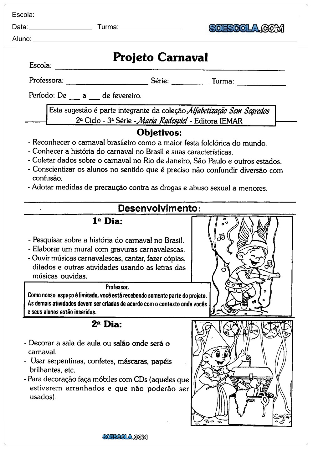 – Fazer desenhos carnavalescos para decorar a sala de aula.