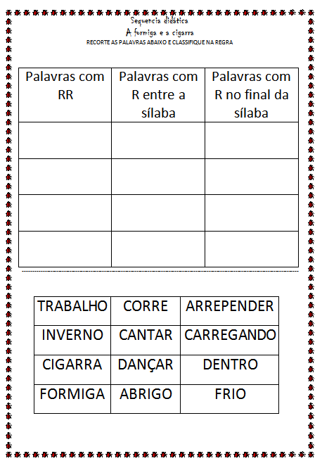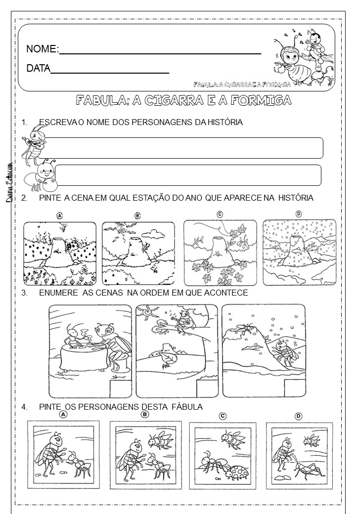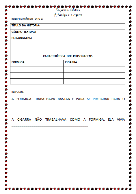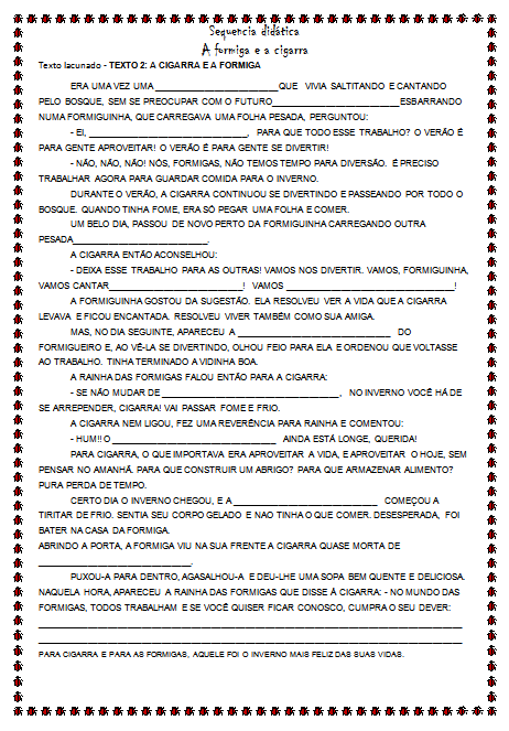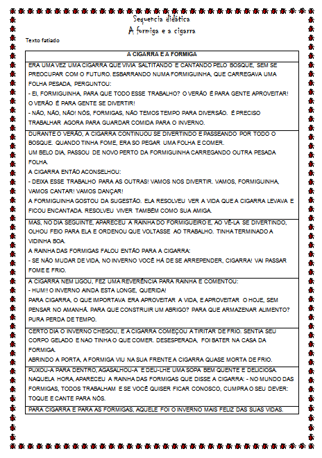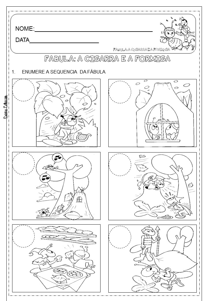 Sequência didática completa da fábula “A Cigarra e a Formiga”.