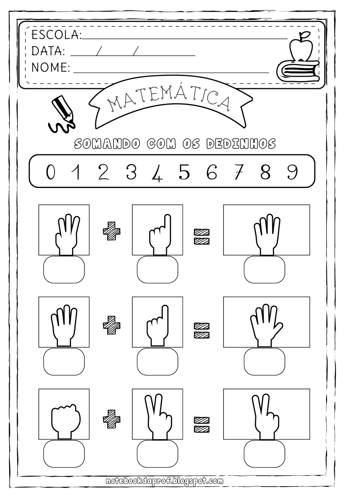 | Somando com os Dedinhos – Atividades de Matemática |