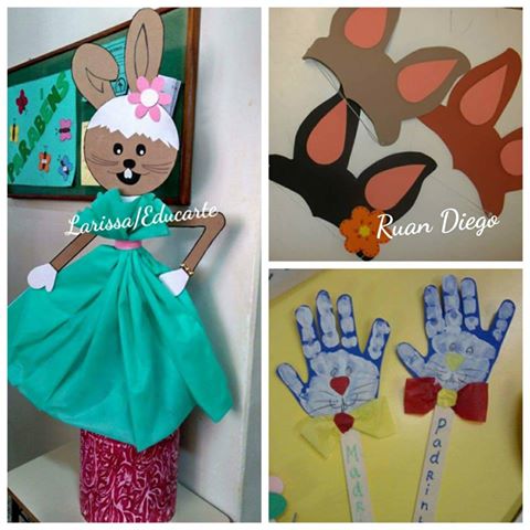 3 ideias para a Páscoa: A professora Larissa se inspirou na coelhinha de papelão (Veja aqui) que postamos outro dia e resolveu fazer uma para enfeitar sua sala de aula.