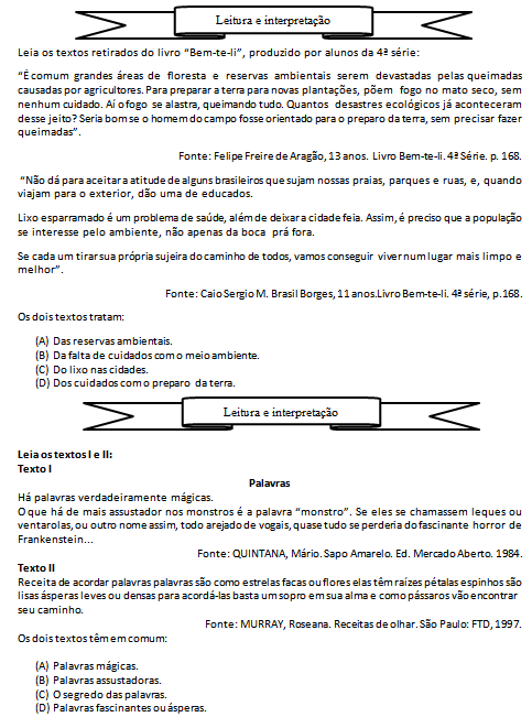 | 94 Textos para trabalhar leitura e interpretação. |