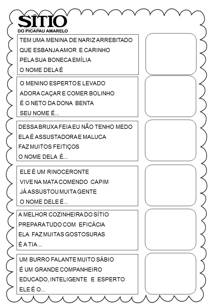 Adivinha recorte e cole Sitio do Pica-pau Amarelo