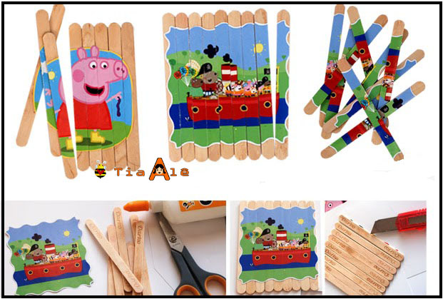 Atividades com Palitos de Picolé na Educação Infantil: Vamos mostrar inicialmente algumas atividades bem lúdicas com palitos de picolé ou tirinhas de papelão. São quebra-cabeças com figuras ou desenhos simples e pequenos murais. Estas atividades ajudam no desenvolvimento da imaginação e na apreensão de conceitos iniciais como número, numeral, simetria, lógica, alfabeto e expressão artística através da pintura.