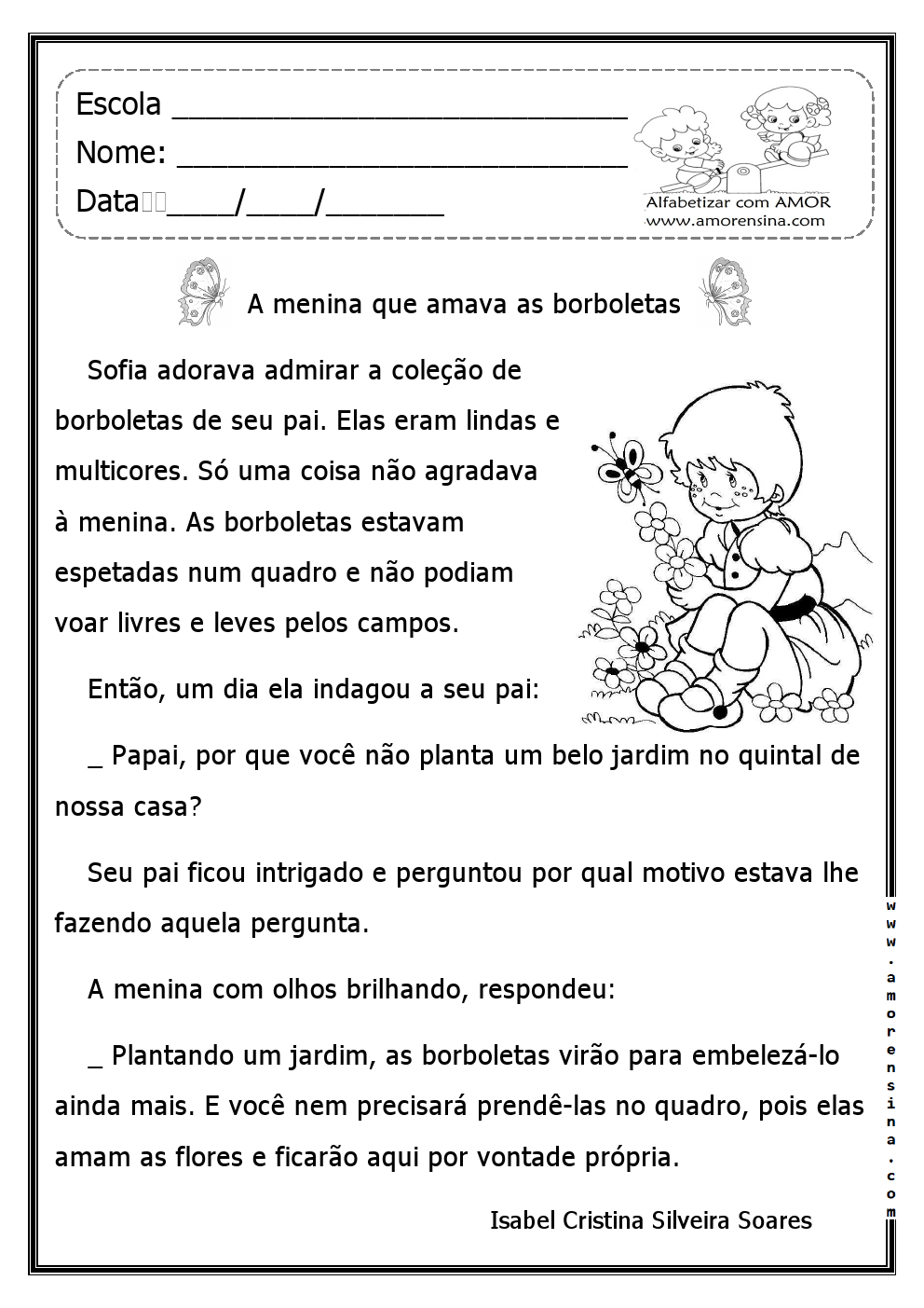 A menina que amava as borboletas Amor e Respeito aos AnimaisAtividades para 3º e 4º ano