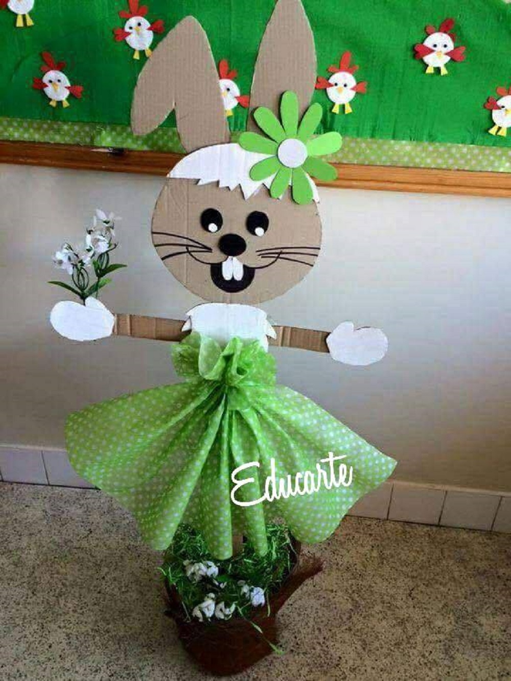 Navegando hoje pelo Facebook me deparei por está fofura !!! Coelhinha feita de papelão e detalhes em tecidos e retalhos de papéis.