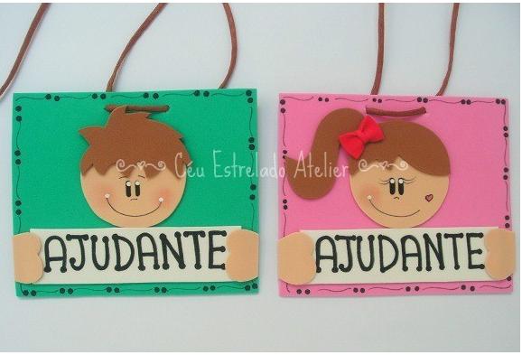 Confeccione para incentivar o aluno ajudante do dia, um acessório de uso como: Avental ou crachá ou plaquinha ou chapeuzinho etc. De modo que ao receber qualquer visita, esta perceba a existência do ajudante na sala e também pelas próprias crianças.