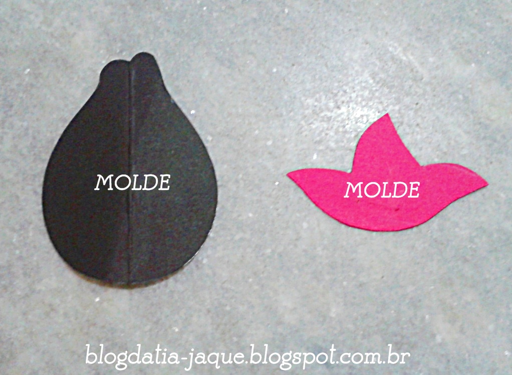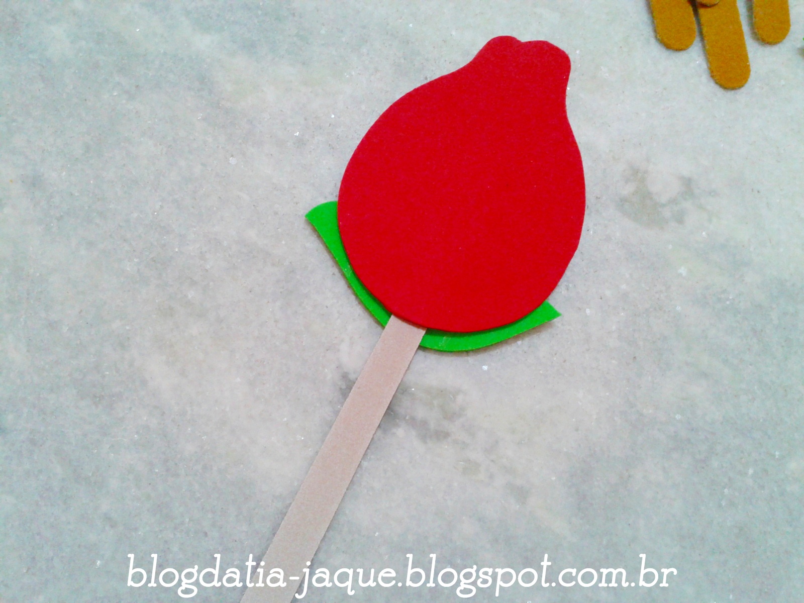 Com os moldes faça a flor no E.V.A. Você pode usar cores como rosa, laranja, lilás, o vermelho não é uma regra. Depois de desenhar cubra com o pincel (preto) para quadro branco; recorte.