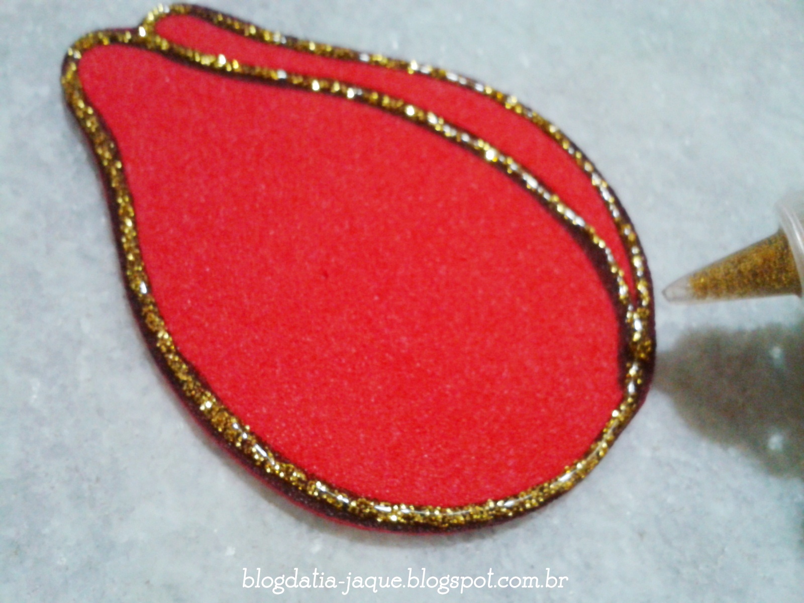 Passe a cola Glitter dourada sobre o contorno do pincel e espere secar bem.