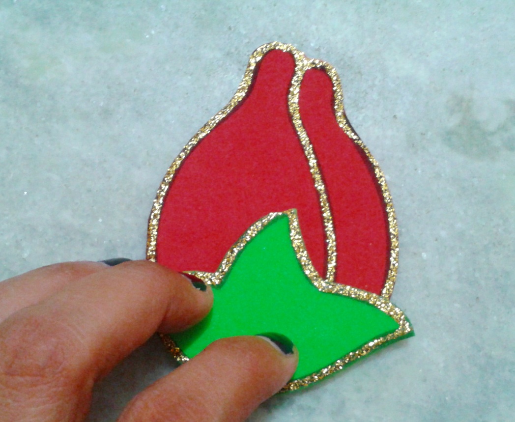 Com a cola quente ou isopor cole a parte verde na flor de maneira que permita o encaixe da lixa. Comprei as lixas a 10 centavos cada. É baratinho..