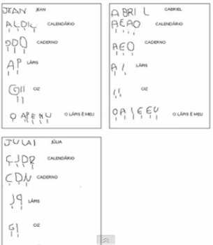 Nesse nível, a criança está a um passo da escrita alfabética. Ao professor cabe o trabalho de refletir com ela sobre o sistema linguístico a partir da observação da escrita alfabética e da reconstrução do código.