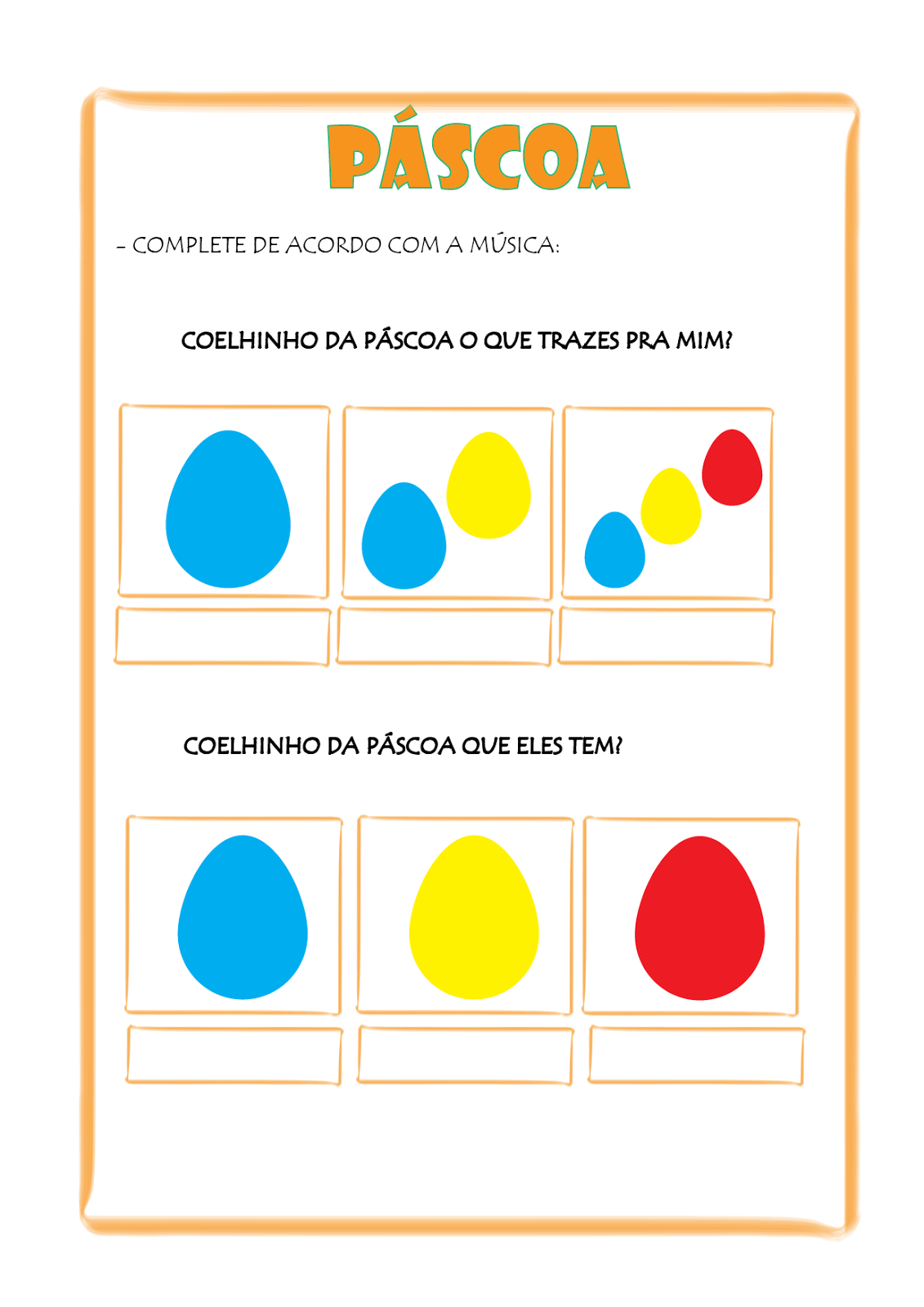 No ambiente escolar, os professores podem encontrar inspiração nesses símbolos para reforçar a temática. Atividades sobre a Páscoa podem tornar essa abordagem muito mais divertida e produtiva. Confira, a seguir, alguns exemplos de atividades de páscoa para imprimir que podem ser aplicadas em sala de aula.
