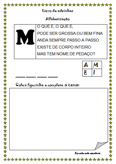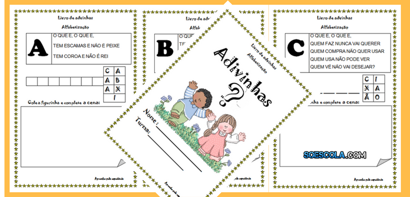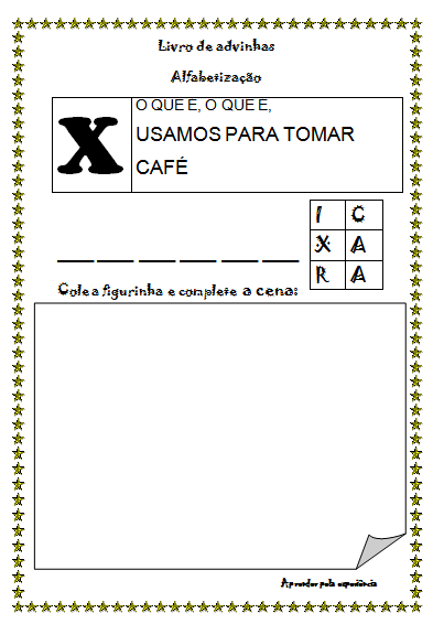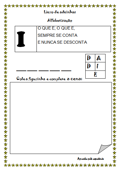 Nesta sequencia você encontrará uma adivinha para cada letra do alfabeto; figurinhas para fazer relação entre imagem e palavra; e mexe mexe fechado.