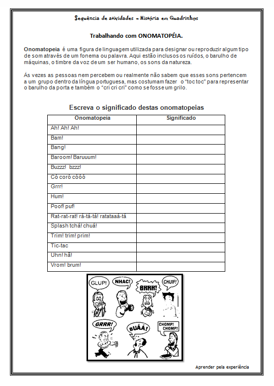 - leitura e interpretação de história em quadrinhos;
