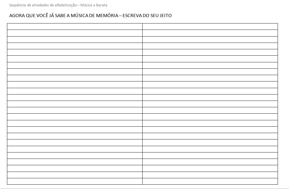 Sequência de Atividades de alfabetização – música “A barata diz que tem”