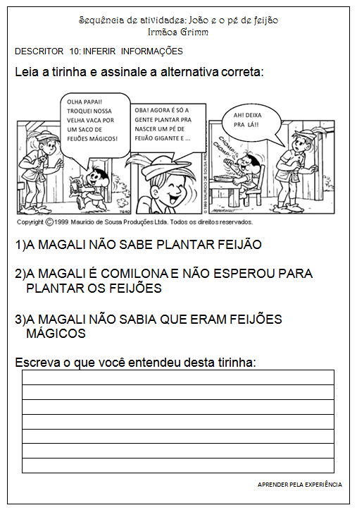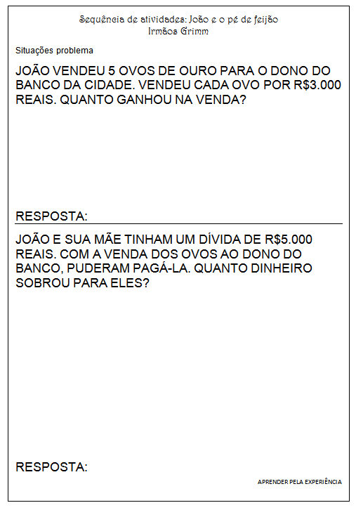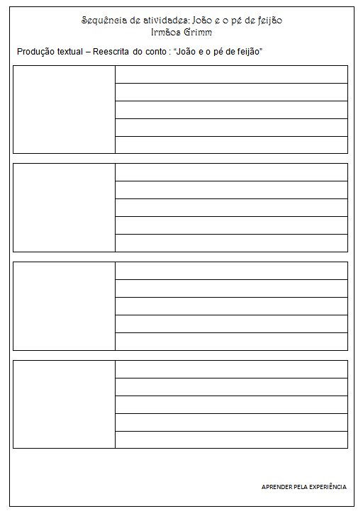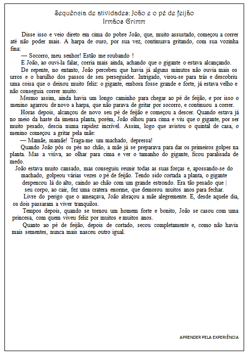 | Sequência de atividades do conto: “João e o pé de feijão” |