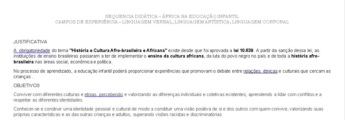 SEQUÊNCIA DIDÁTICA – ÁFRICA NA EDUCAÇÃO INFANTIL