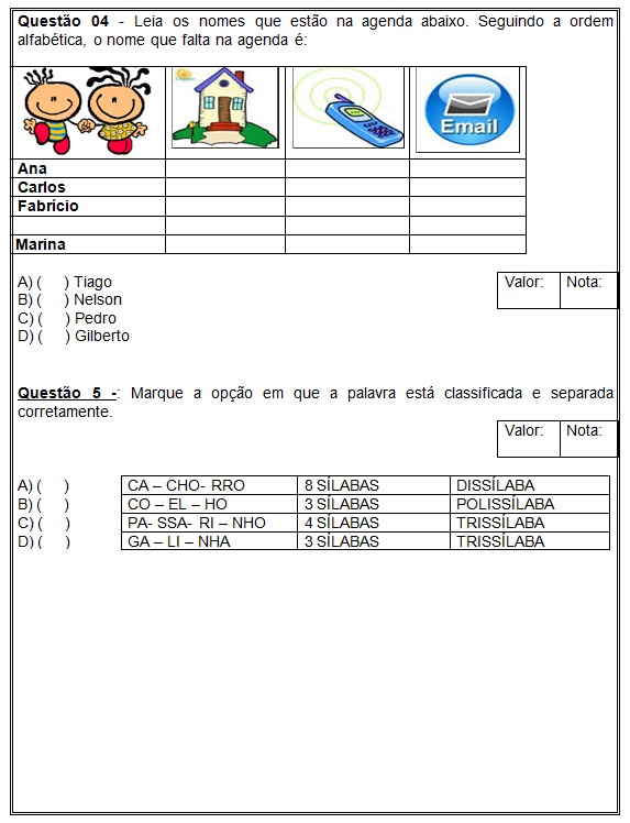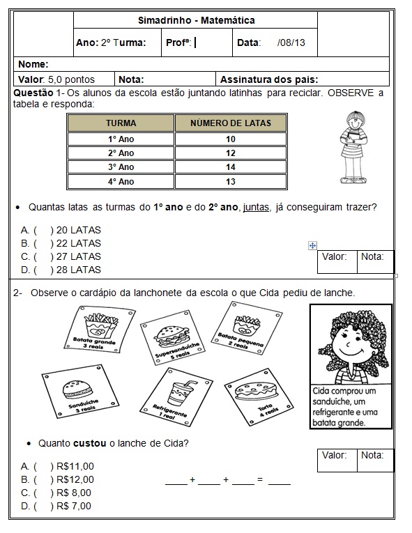 | Simulado de Português e Matemática com gabarito – 2º ano |