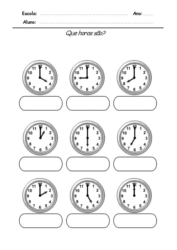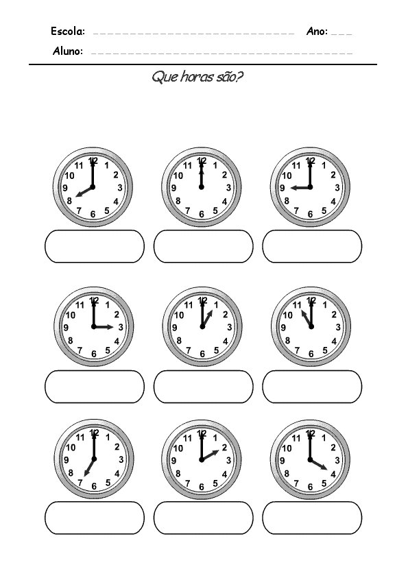 Atividades para trabalhar com as Horas, Exercícios sobre Horas, Atividade que Horas São, Atividades com as horas