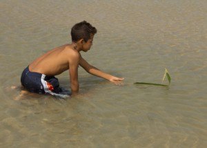 | Créditos: Território do Brincar Folha de coqueiro vira barquinho nas mãos de menino. |
