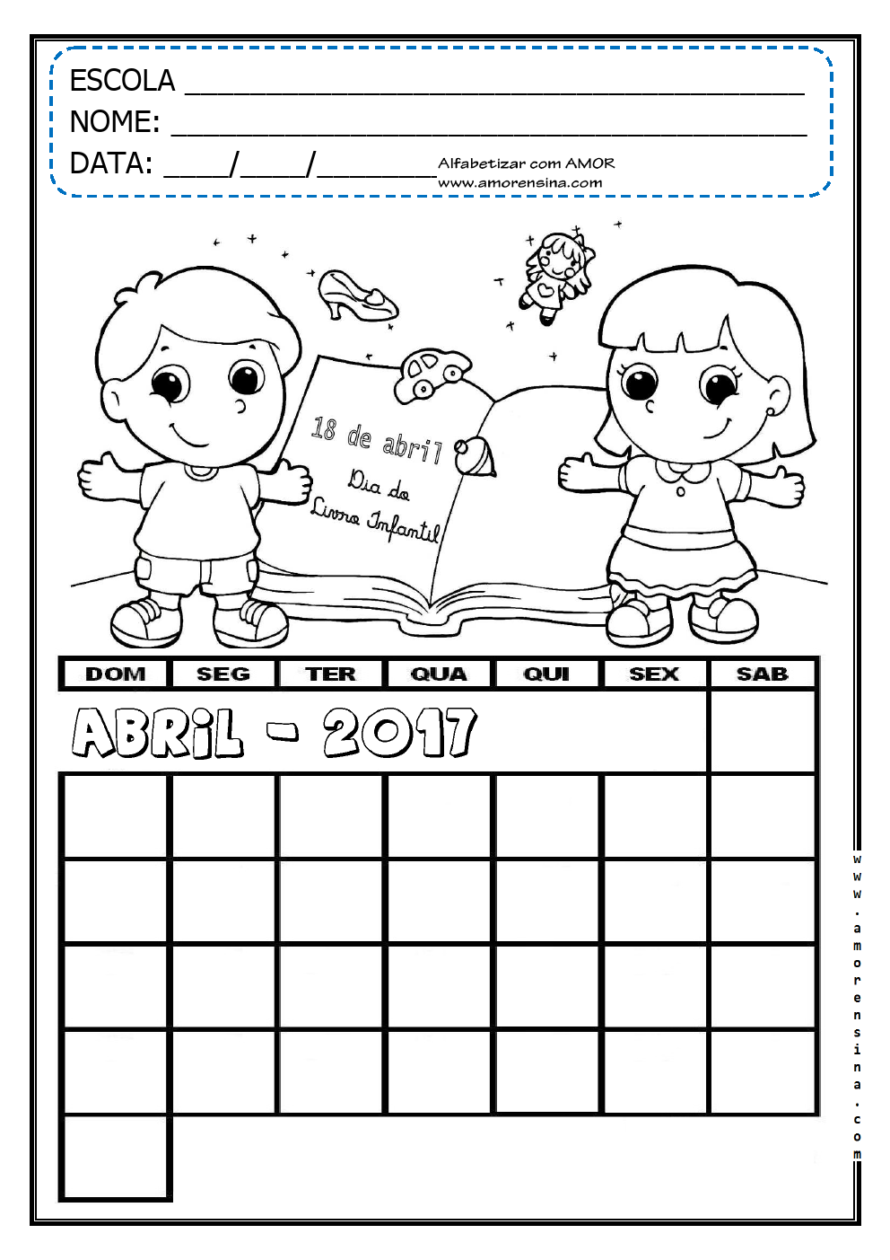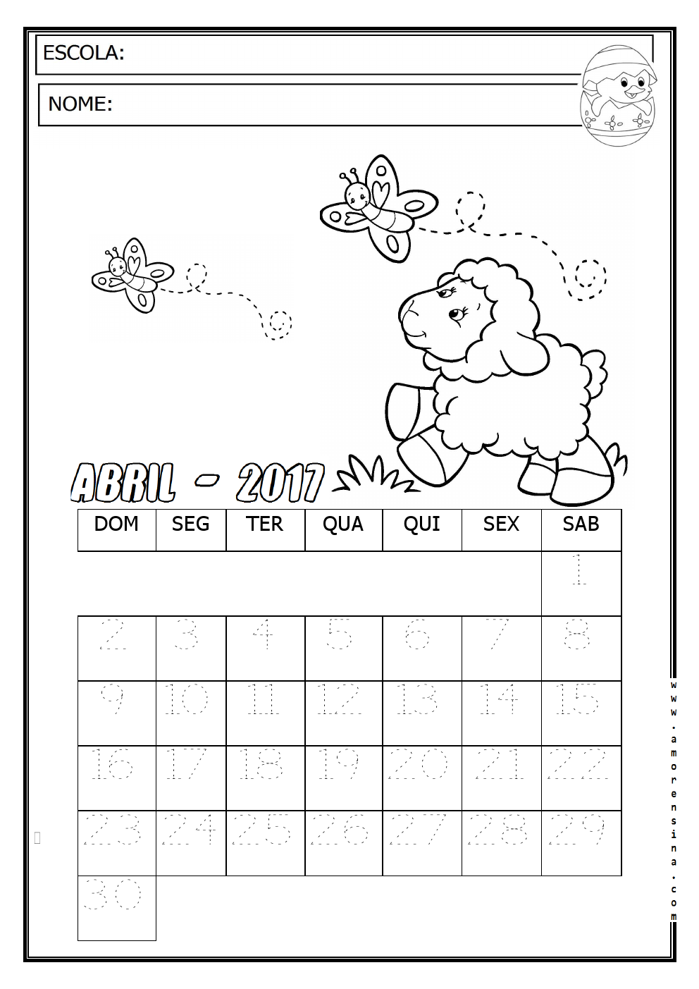 CALENDÁRIOS DO MÊS DE ABRIL- 2017
