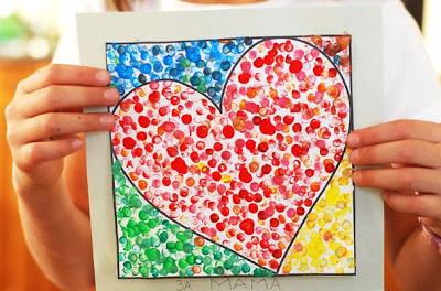 Cartão com coração carimbado pra mamãe. Com molde disponível para imprimir.