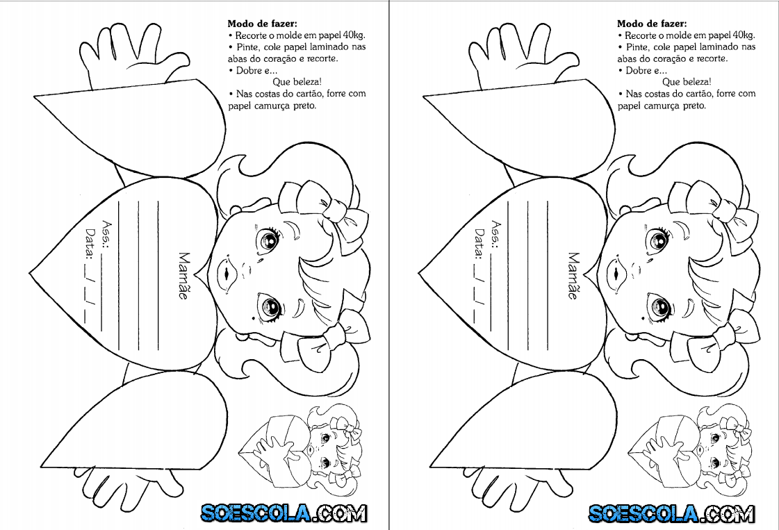 Modelo Cartão Dia das Mães para colorir, imprimir e recortar