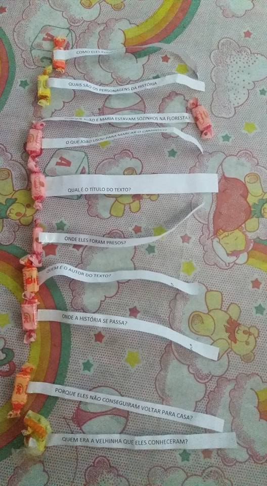 Casinha da Interpretação – História (João e Maria). Leitura do texto com interpretação colada nas balinhas.