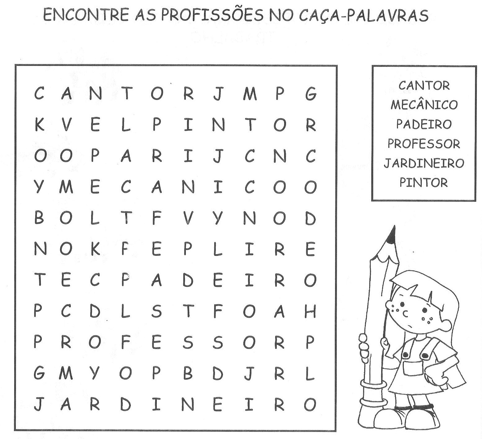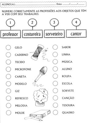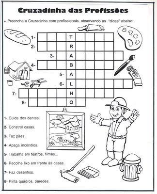 Textos, caça-palavras, cruzadinhas, atividades com letras pontilhadas, complete as frases, numero o objeto, Desenhos para Colorir, complete com os nomes das profissões, e muito mais.