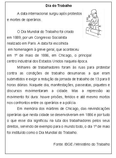 Atividades Dia do Trabalho