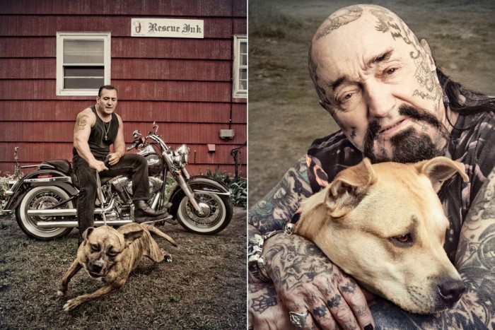 Eles se conheceram em encontros de veículos antigos e eventos de tatuagens. Depois de um tempo descobriram que suas afinidades iam além dessas coisas e resolveram se unir para criar a Rescue Ink em Nova York, uma ONG que ajuda milhares de animais indefesos ou em perigo.