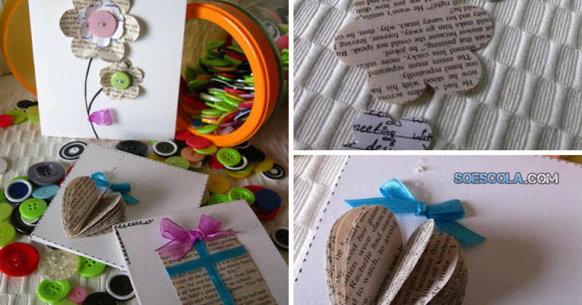Para quem está buscando alguma ideia barata está postagem vai de ajudar muito. Usando apenas reciclagem de jornais antigos e papel você pode confeccionar lindos cartões com sua turma.