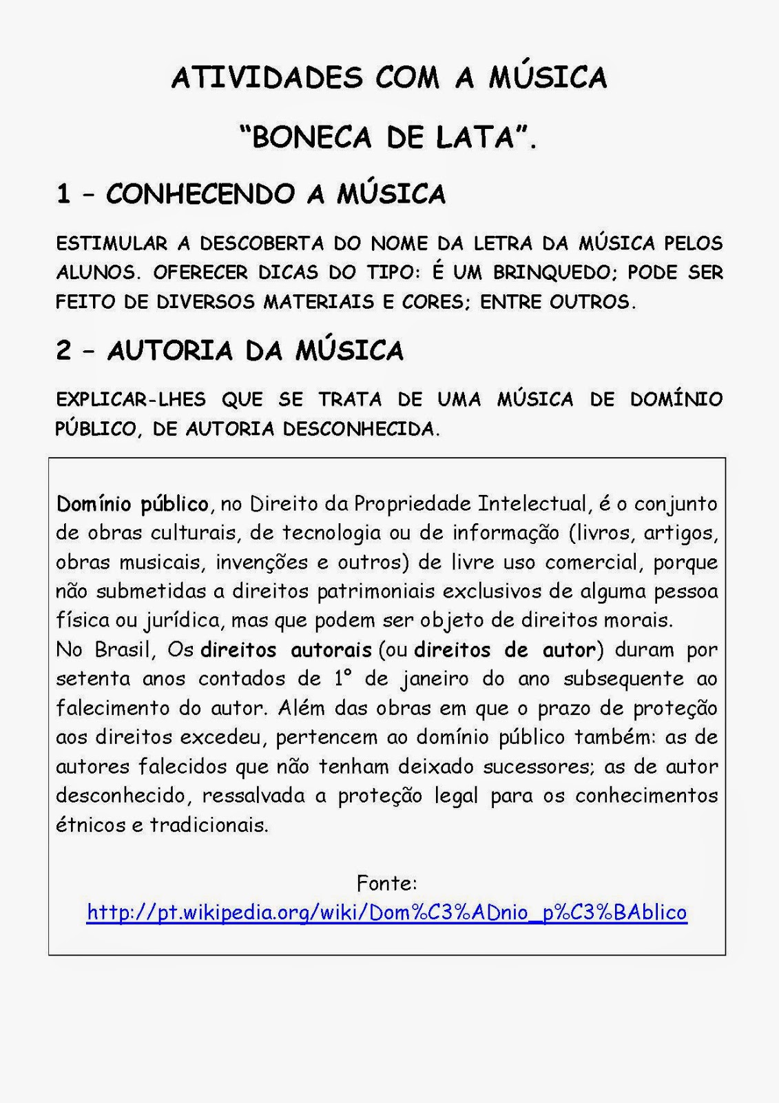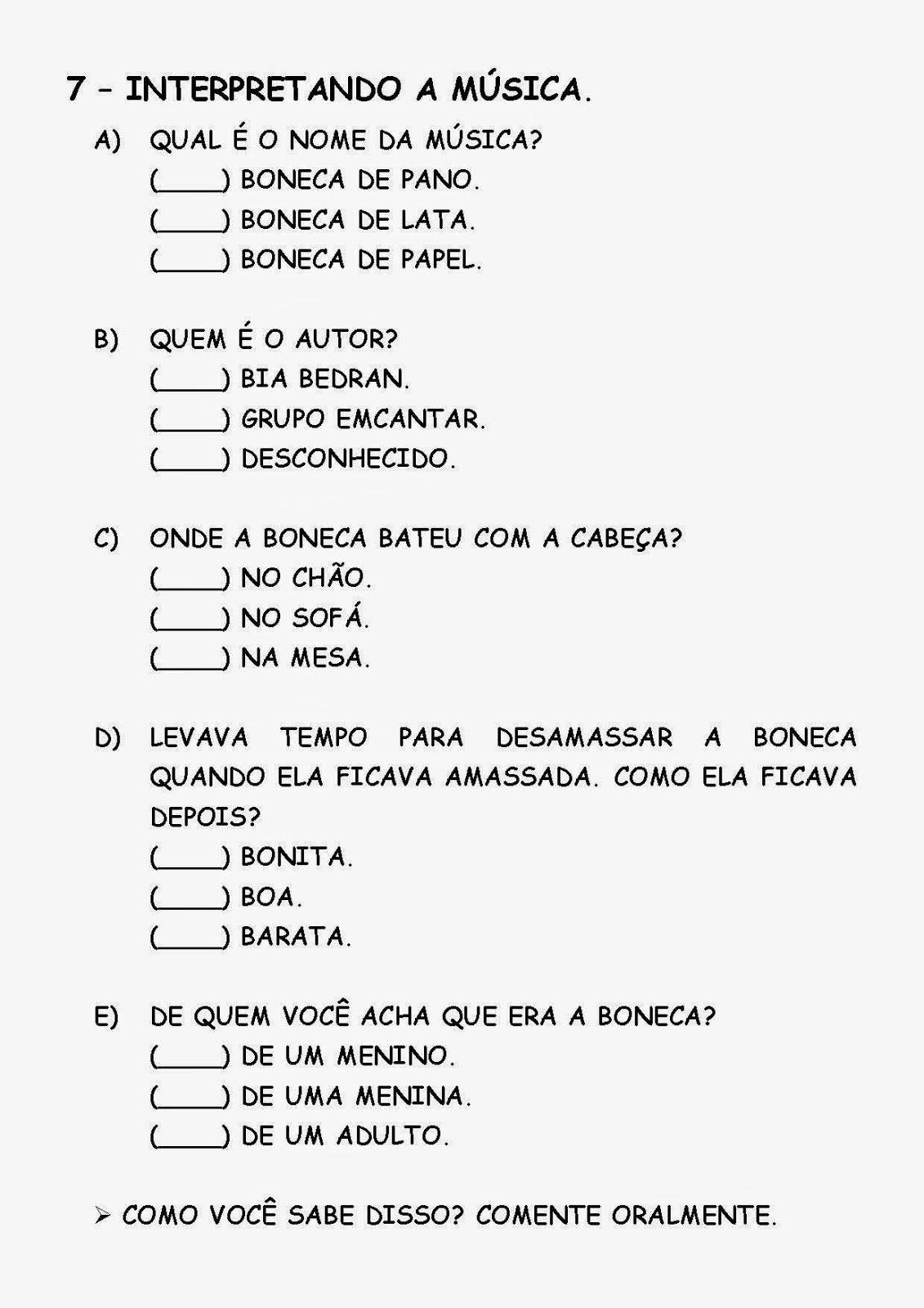 1- Você conhece a música “BONECA DE LATA”?