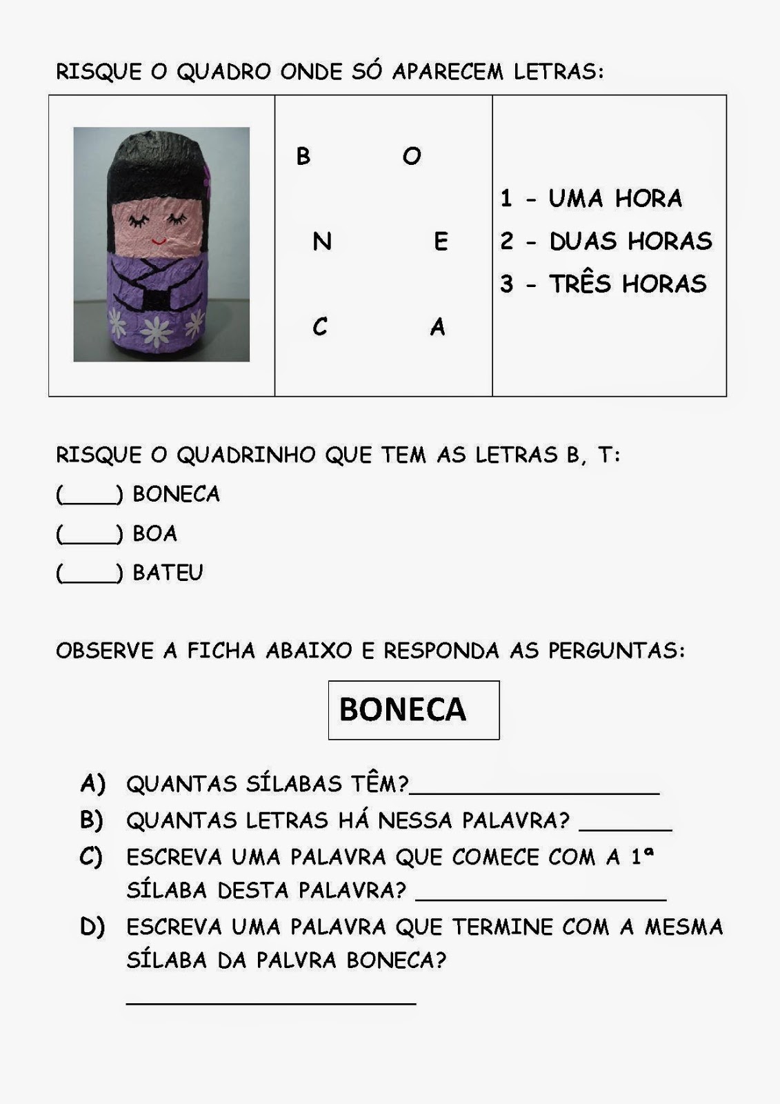 CARTAZES DA BONECA DE LATA FEITOS PELA PROFESSORA
