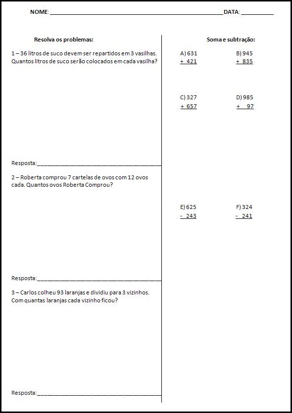 Confira atividades para sondagem, uma das atividades é para a sondagem de escrita de bilhetes e interpretação de textos, a outra é uma sondagem de matemática com situações problemas e com operações matemáticas.