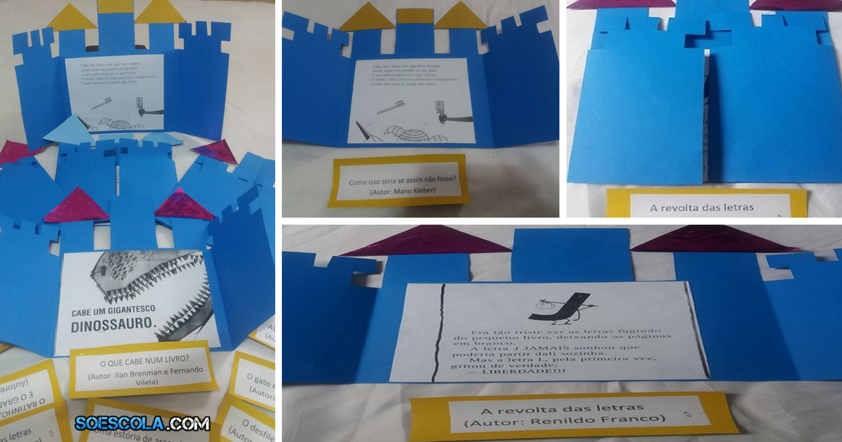 • Confeccione tarjetas e cole os títulos e autores dos livros que suas partes foram coladas nos castelos.