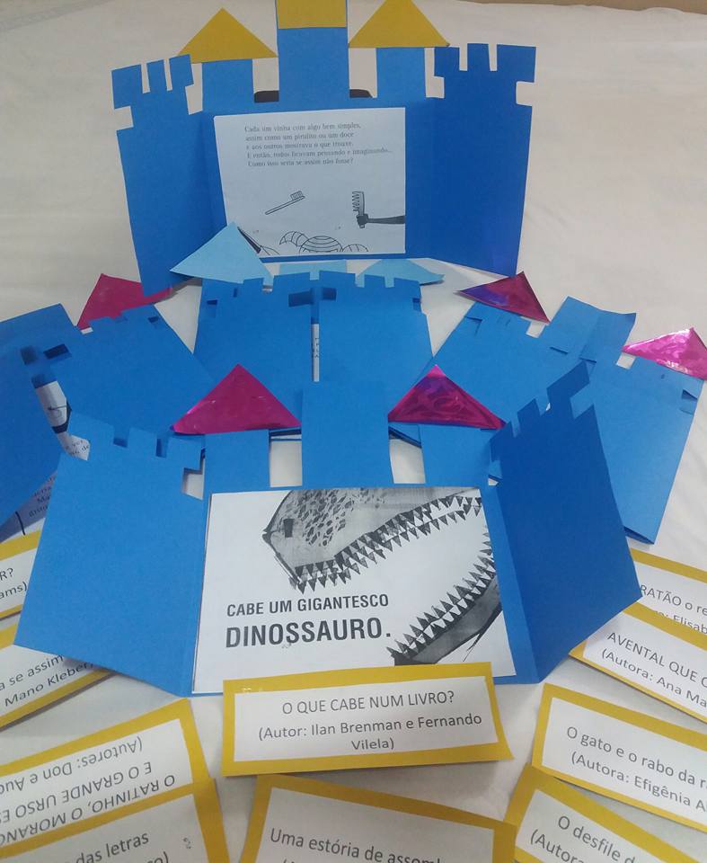- Confeccione tarjetas e cole os títulos e autores dos livros que suas partes foram coladas nos castelos.