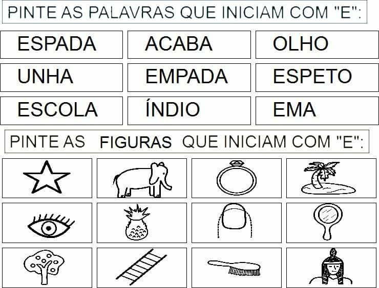 - Pinte figuras que iniciam com “E”;