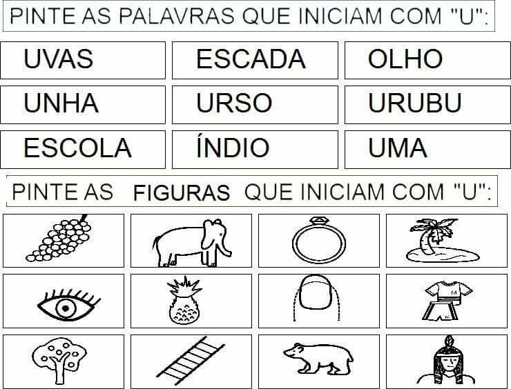 - Pinte palavras que iniciam com “U”;
