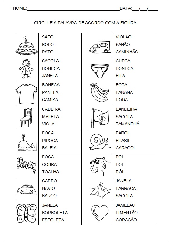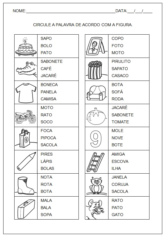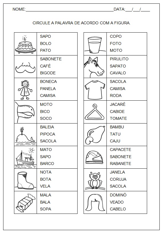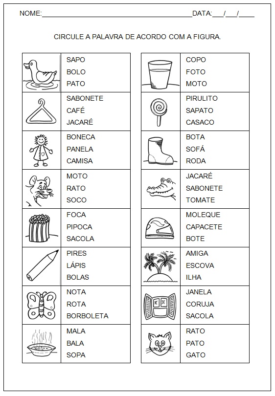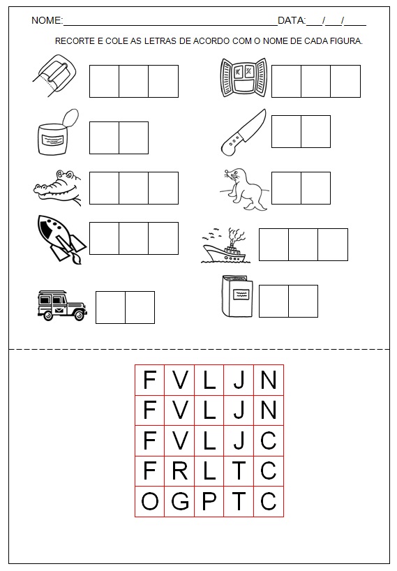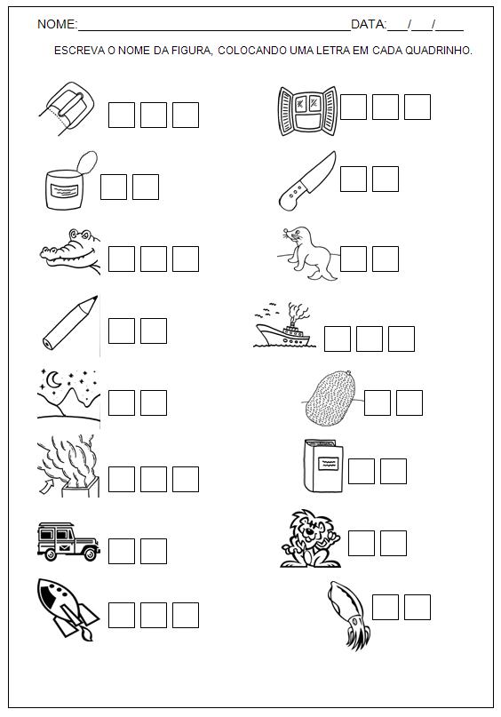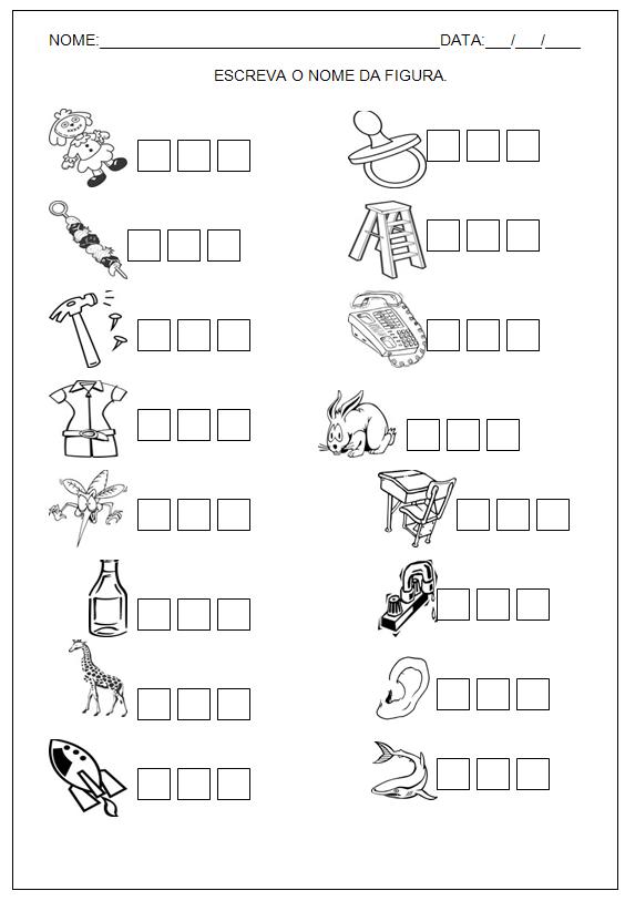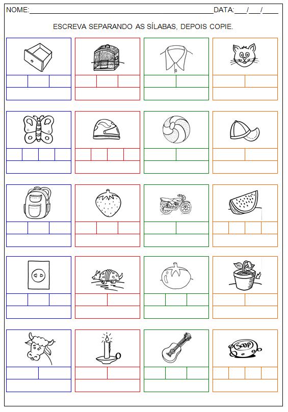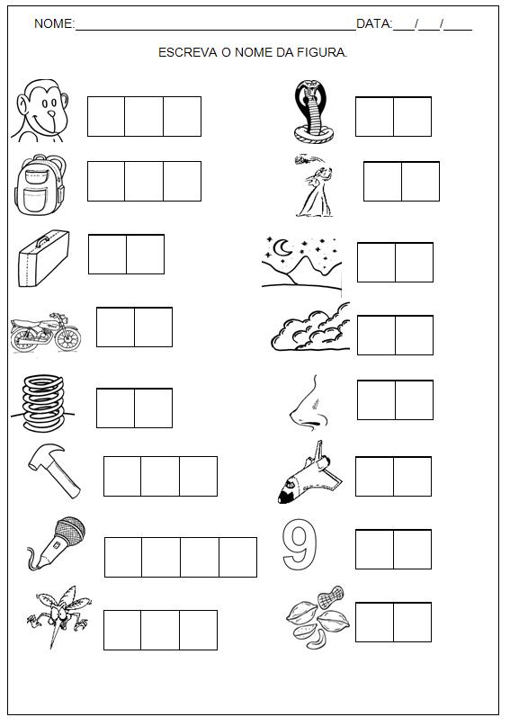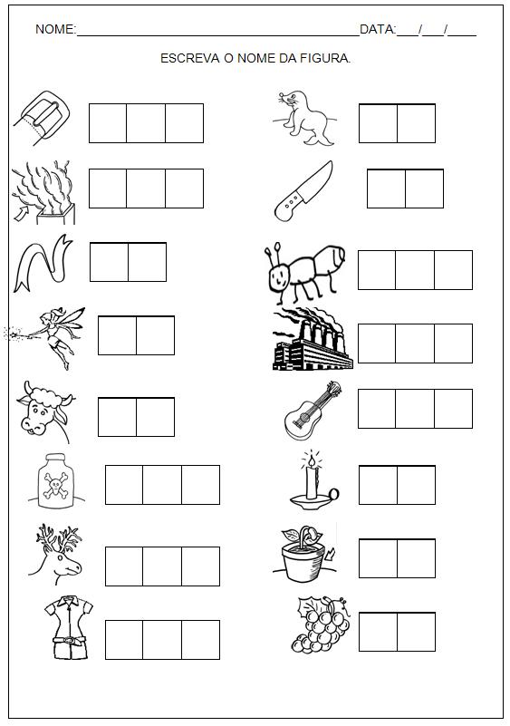 Atividades para Alfabetização – Hipótese de escrita silábica sem valor sonoro para imprimir