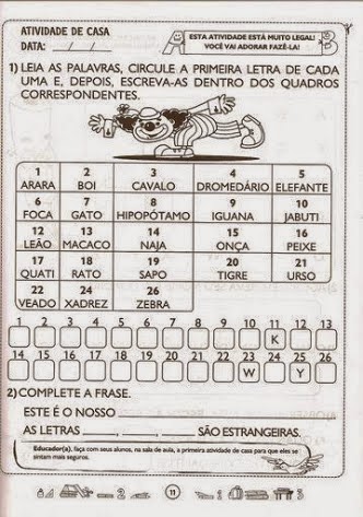 Atividades com Alfabeto para imprimir