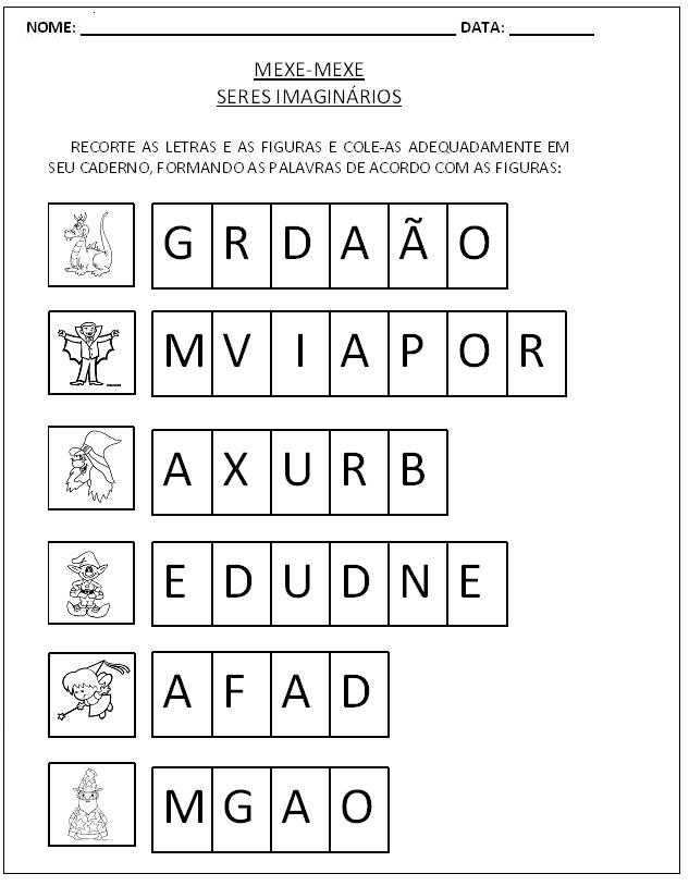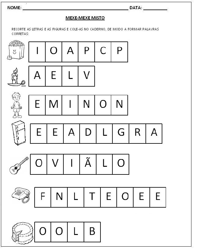 Atividades para Alfabetização – Mexe-Mexe de palavras.